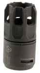 Strike Industries' Oppressor represents the next evolution in concussion reduction devices. It provides a no compromise solution for redirecting the gases produced by aggressive brakes and compensators. The advanced internal geometry actively draws the gases out and thrusts the gases forward through vents to accomplish linear braking in order to retain more braking efficiency. It uses a proprietary quick detach mounting system, which can be rapidly installed before transitioning to prone shooting positions, or for indoor use. The Oppressor is compatible with SI muzzle devices which include: Venom-FH, Checkmate Comp, King Comp, MK-9 Comp, J-Comp Gen2, Sierra Comp, and Triple Crown Comp.