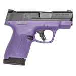 Smith & Wesson, Shield Plus, M&P9, Semi-automatic, Striker Fired Polymer Frame Pistol, Micro-Compact, 9MM, 3.1" Barrel, Armornite Finish, Black Slide, Purple Cerakote Frame, White Dot Sights, Manual Thumb Safety, Flat Face Trigger, 2 Magazines, (1) 10-Round (1) 13-Round