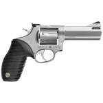 Extremely comfortable to fire and easy to control, the Tracker Series maintains a high level of accuracy, rock-solid performance, and near-indestructible construction. The Model 627 revolver 357 Magnum has a 7-round cylinder, and makes a practical choice for backpacks and tackle boxes, especially where there are bears and other predators around. It has a transfer bar safety as well as the Taurus Security System. The 627 Tracker features factory-tuned barrel porting and a gas expansion chamber for recoil, as well as the ergonomic, shock-absorbing Ribber grip. It has a matte stainless steel metal finish with a fixed front sight and adjustable rear sight. This model has a 4" barrel.