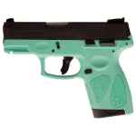 With its lightweight polymer frame, slim profile, and 3.25" barrel, the G2S is the ideal concealed carry handgun. The G2S is a striker-fired single action with restrike capability and a 5-9 lb. pull. It features an accessory rail, 3-dot white sights with a fixed front and adjustable rear, and manual safety. This G2S model has a cyan frame with a matte black carbon steel slide. It includes two 7-round magazines.
