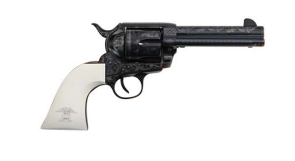 The Frontier series showcases all of Traditions top quality features and finishes. These 1873 revolvers are truly shooting works of art. The transfer bar safety system provides the highest level of safety offered in an 1873 single action firearm. All models have steel frames and are authentic reproductions. This model is chambered in 45 LC, has a white PVC grip, and has a 4.75" barrel. It has a color-case hardened finish on the frame. This is a 6-shot revolver.