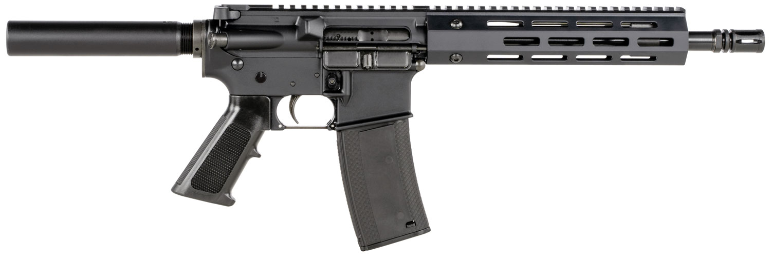 The TROY A3 pistol is lightweight and has an ultra-low profile. It features a standard safety selector, standard trigger flat trigger guard, and a BattleRail forend. The barrel has an A2 flash hider and 1:7 twist rate. The pistol also features aluminum receivers, LFT handstop, and is optic ready.