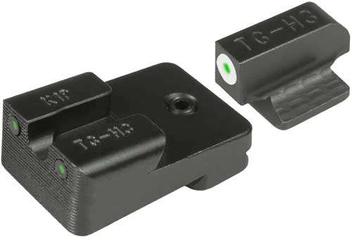 TruGlo's Tritium night sights transition from white dot sights during the daylight, to glowing green dots in the dark - no batteries or light exposure required. Assembled in the USA with quality Swiss Tritium for maximum brightness, these sights utilize CNC-machined steel construction with a snag-resistant design fitting standard holsters, and Truglo's Fortress Finish permanent protective coating for maximum protection.