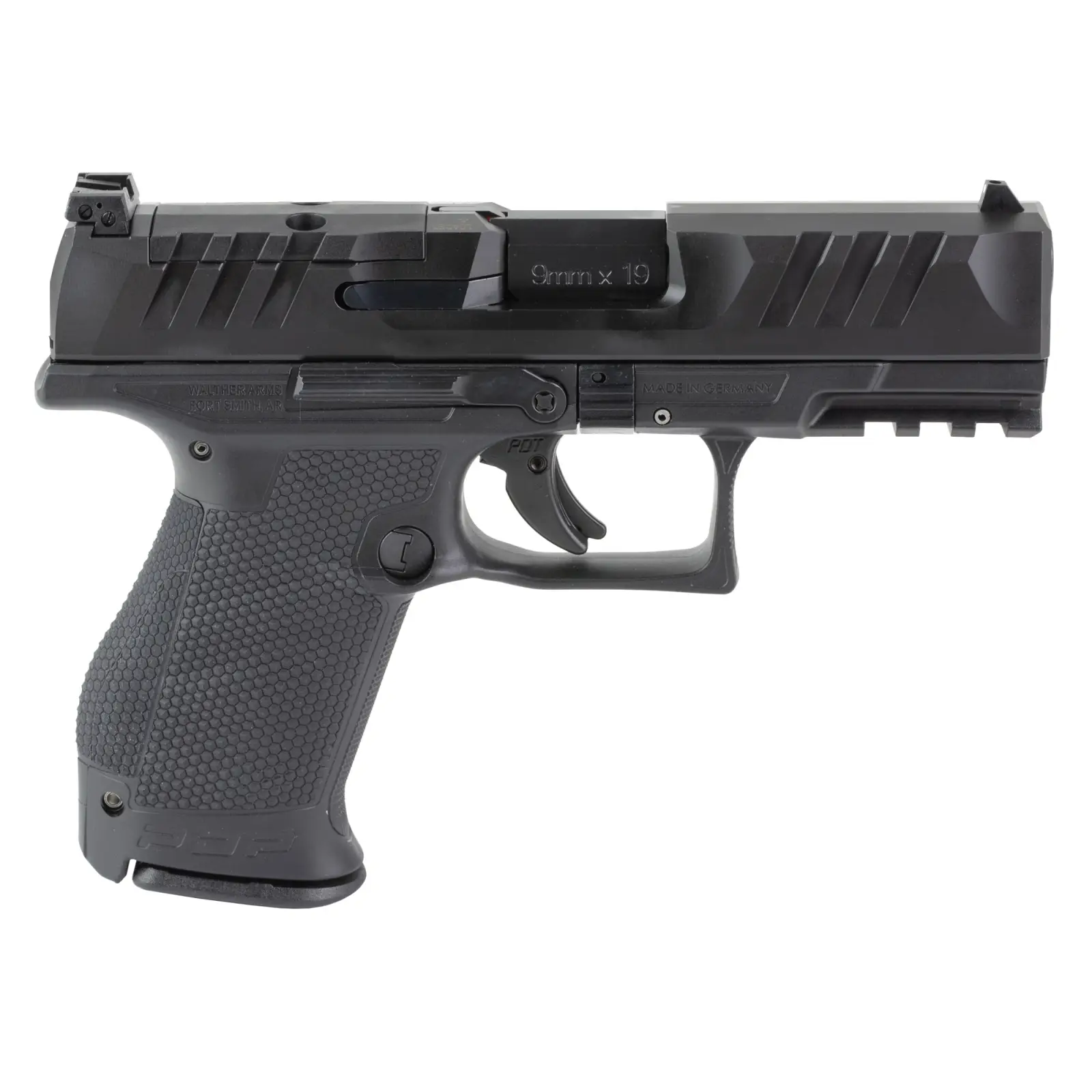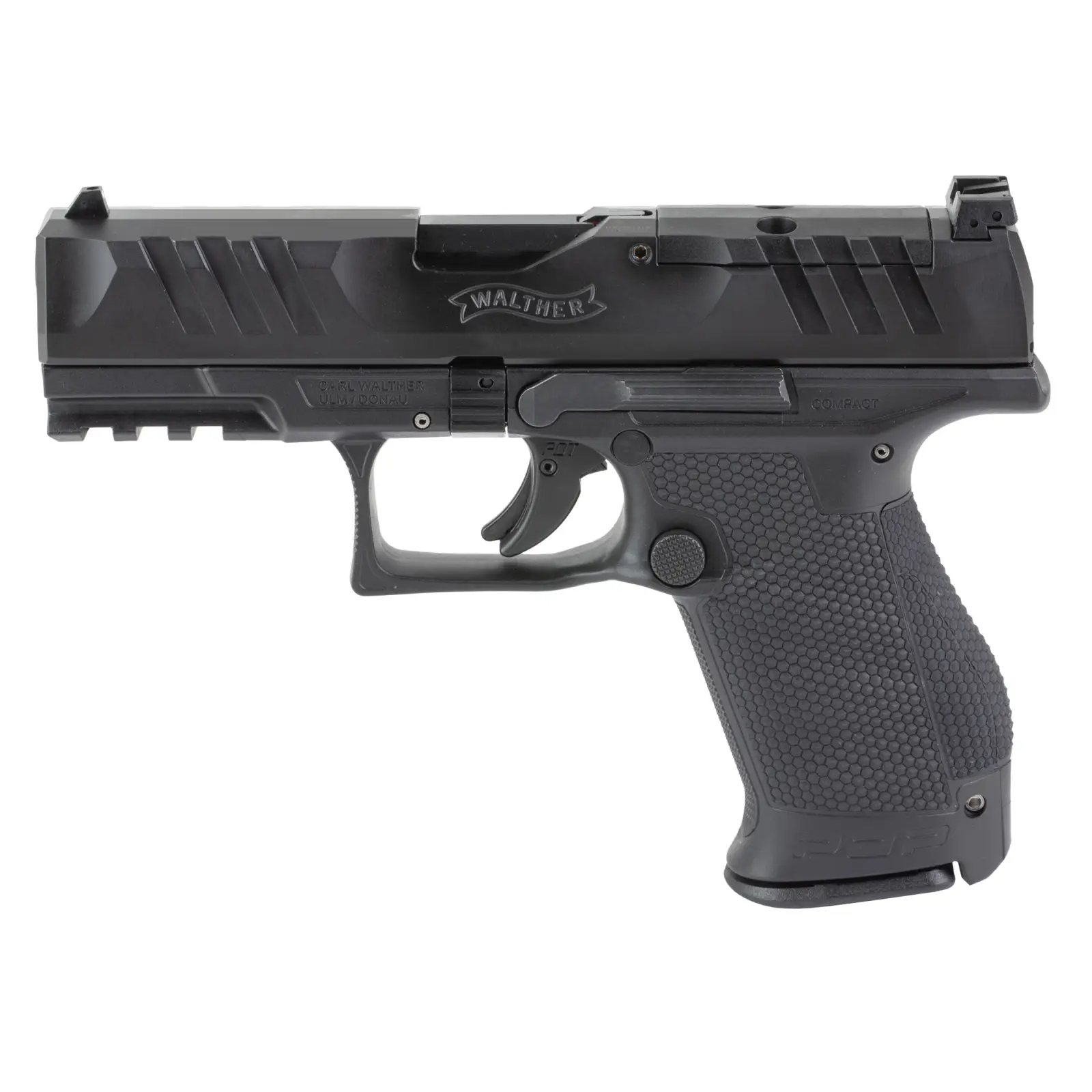 Walther, PDP, Striker Fired, Semi-automatic, Polymer Frame Pistol, Compact, 9MM, 4" Barrel, Black, Adjustable Rear Sight, Optics Ready, 10 Rounds, 2 Magazines, California Compliant
