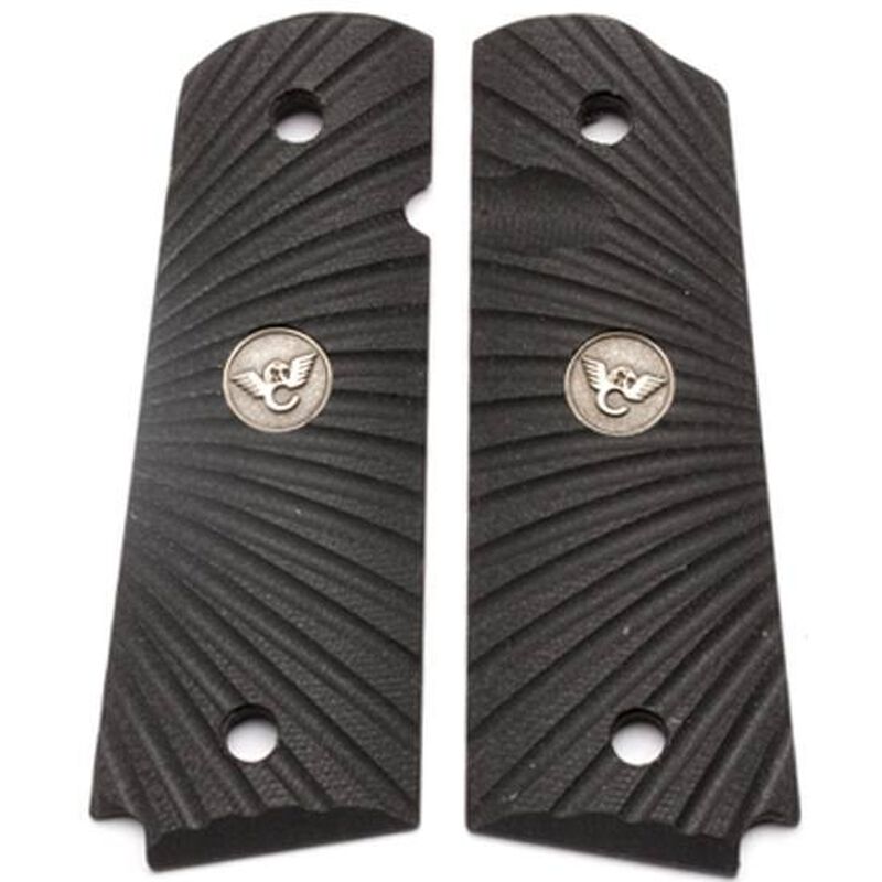 Black G10, Wilson Combat Unique Starburst Pattern, Pewter Inset Medallion cut for Ambidextrous Thumb Safety.