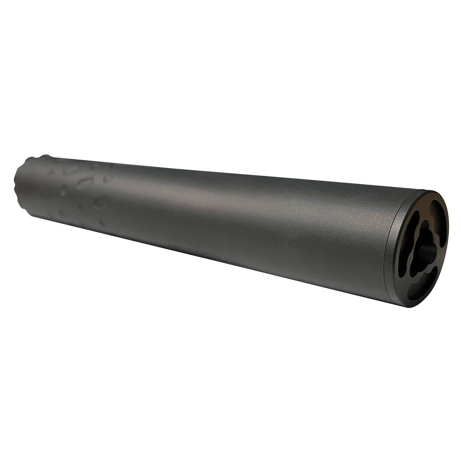 The booster system has been completely redesigned and now uses the industry's unofficial standard piston. The redesign also includes the ability to swap pistons without the use of tools thanks to a new rear cap. The front cap has been redesigned to allow for better engagement with the takedown tool to make the service process easier. The Sidewinder M2 is user serviceable which allows both the baffle and Nielsen device to be removed for cleaning and maintenance using the provided disassembly tool. The Nielsen piston (device) enables flawless semi-automatic operation on all relevant host pistols. The Sidewinder M2 has 12 index points that allow you to adjust point of impact while remaining attached to the host firearm. The average dry sound signature of the Sidewinder M2 .45 when testing to Mil-Std 1474D is 133 dB dry on a Glock G21 using 230gr. FMJ ammo. Shooting the suppressor "wet" will net even quieter results.