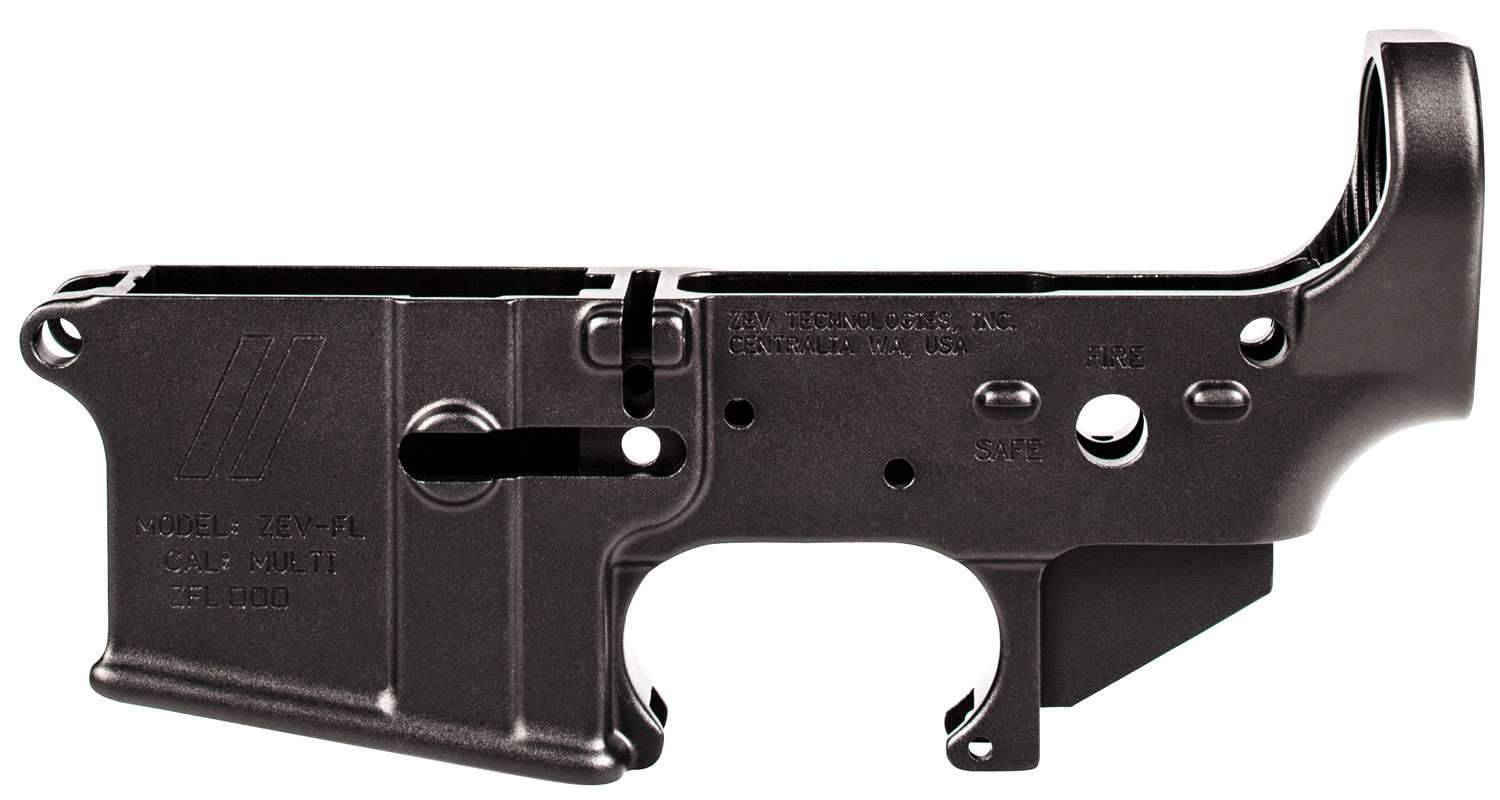 ZEV Technologies Forged AR-15 Lower Receiver comes stripped and ready for your next custom AR build. The lower features the original "GATOR GRIP" texture on the front of the mag strap for added grip and a generous flare cut to the magazine well for quick magazine changes. It is constructed of high-quality 7075 T6 aluminum with mil-spec dimensions and a black hardcoat anodize finish. It also has a nylon tipped tension screw for adjusting to various uppers.