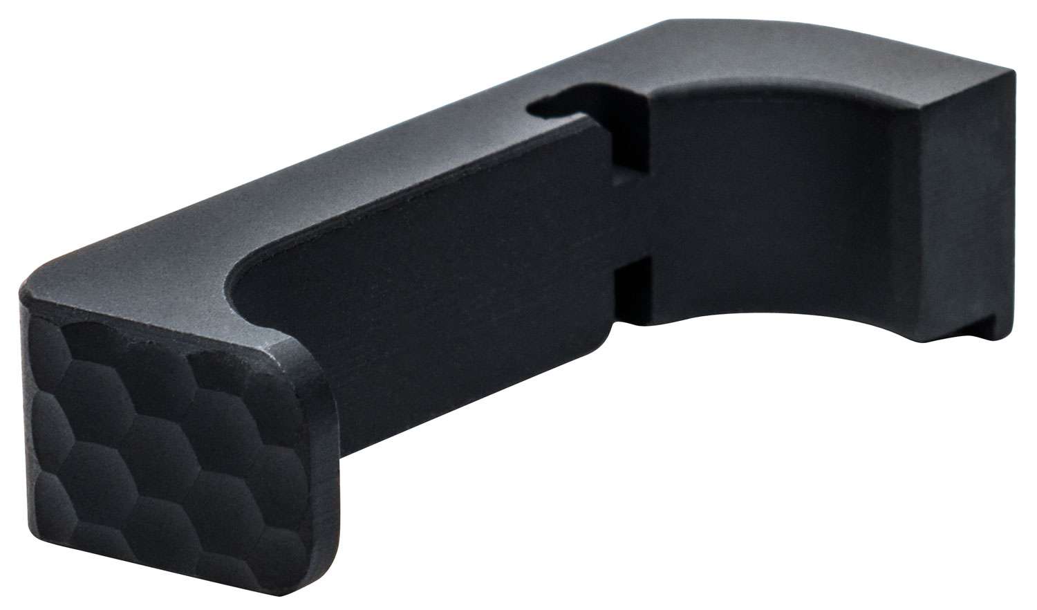 Zev Technologies Gen4 Magazine release for the Glock is constructed from billet 6061 aluminum with a Mil-Spec black hard anodized finish. It has a checkered non-slip ergonomically angled face to allow ease of manipulation in performing magazine changes. This model is compatible with Glock 17 Gen4. Not compatible with Gen3 models.